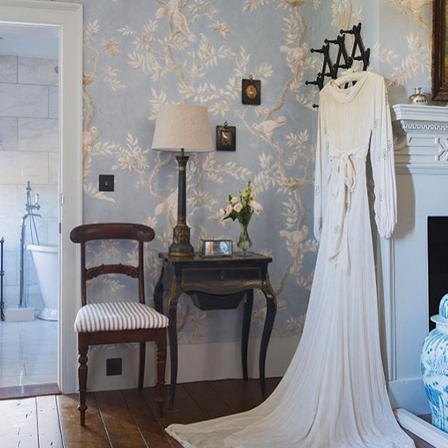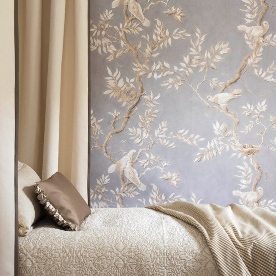 Doves Wallpaper by Lewis & Wood for the Bedroom offers a serene and peaceful ambiance with its elegant motifs of doves in flight. The design often features soft, muted colors that blend harmoniously, creating a tranquil backdrop ideal for relaxation and restful sleep. This wallpaper brings a touch of nature indoors, symbolizing love and peace, making it a perfect choice for those looking to create a calming retreat in their bedroom.
