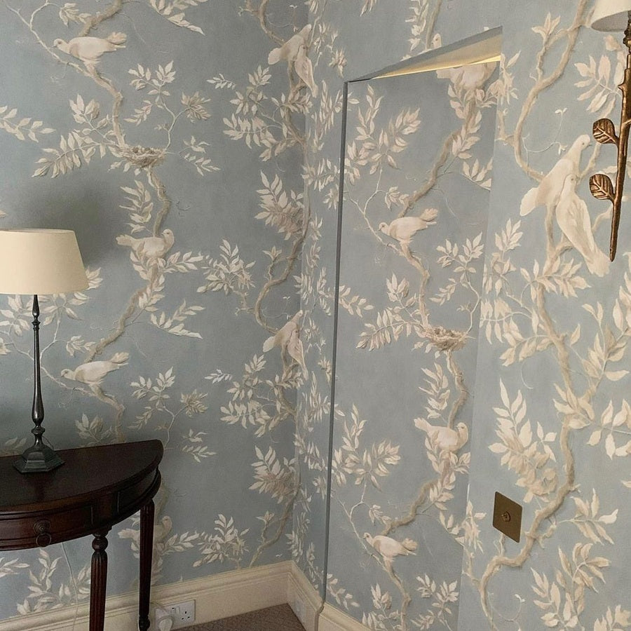 Doves wallpaper by Lewis & Wood can bring a serene and elegant atmosphere to a living room, featuring delicate patterns of doves that evoke a sense of peace and tranquility. This design often uses soft colors and subtle motifs, making it a versatile choice that can enhance both modern and traditional decor. By incorporating doves wallpaper, you can create a calming focal point, perfect for relaxation or entertaining guests. To complement this wallpaper, consider using neutral furnishings, soft textiles, and natural elements that resonate with the theme, ensuring
