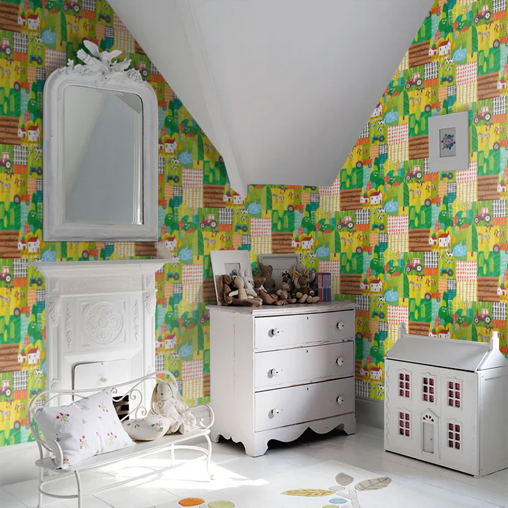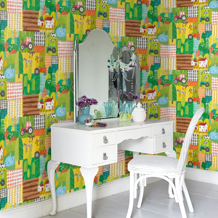 Wellies at the ready! Pull on your galoshes and take a stroll down on the farm. Spot animals and tractors, farmhouses and trees as you wander through this quirky rural landscape. Whistle a merry tune and hike across a patchwork of wide-open fields, up steep hills and down valleys towards cool blue waters. Country life has never looked better.