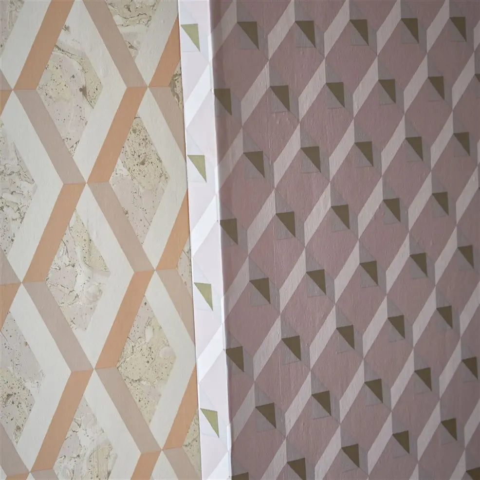 An expressive geometric inspired wallpaper design with a thoroughly modern feel. Highlighted with metallic accents, this stylish, graphic wallpaper is printed onto a smooth, non-woven ground.
