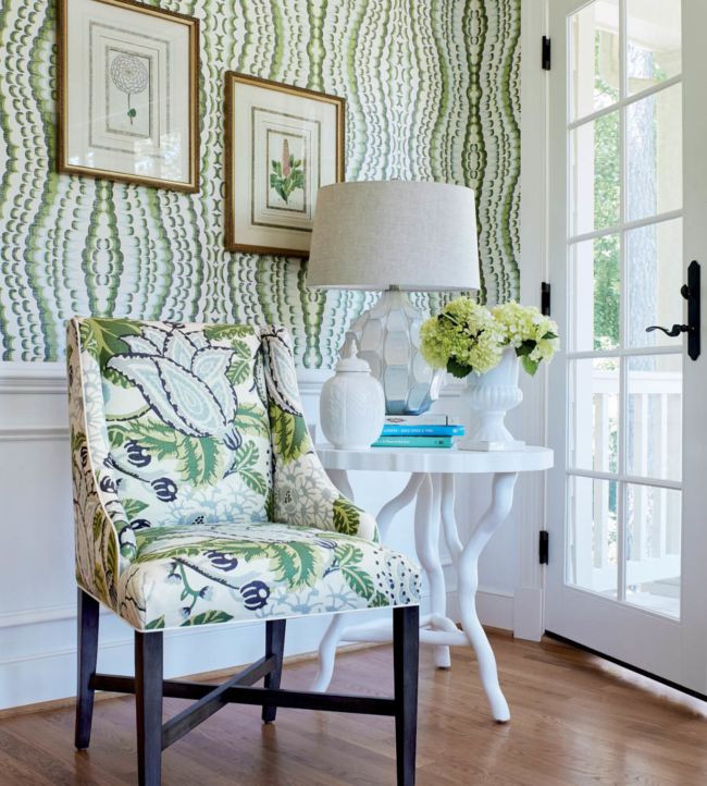 Inspired by the Arts and Design movement that happened early in the 20th century, Ebru wallpaper from the Paramount wallpaper collection by Thibaut features an unusual S-curve design running vertically through the pattern.