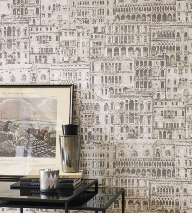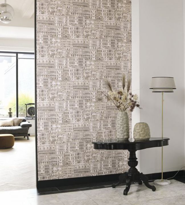 A very detailed design which brings together the refined lines of buildings : arches, corbels, sculpted balustrades and other architectural wonders are printed using different textures and shine.
