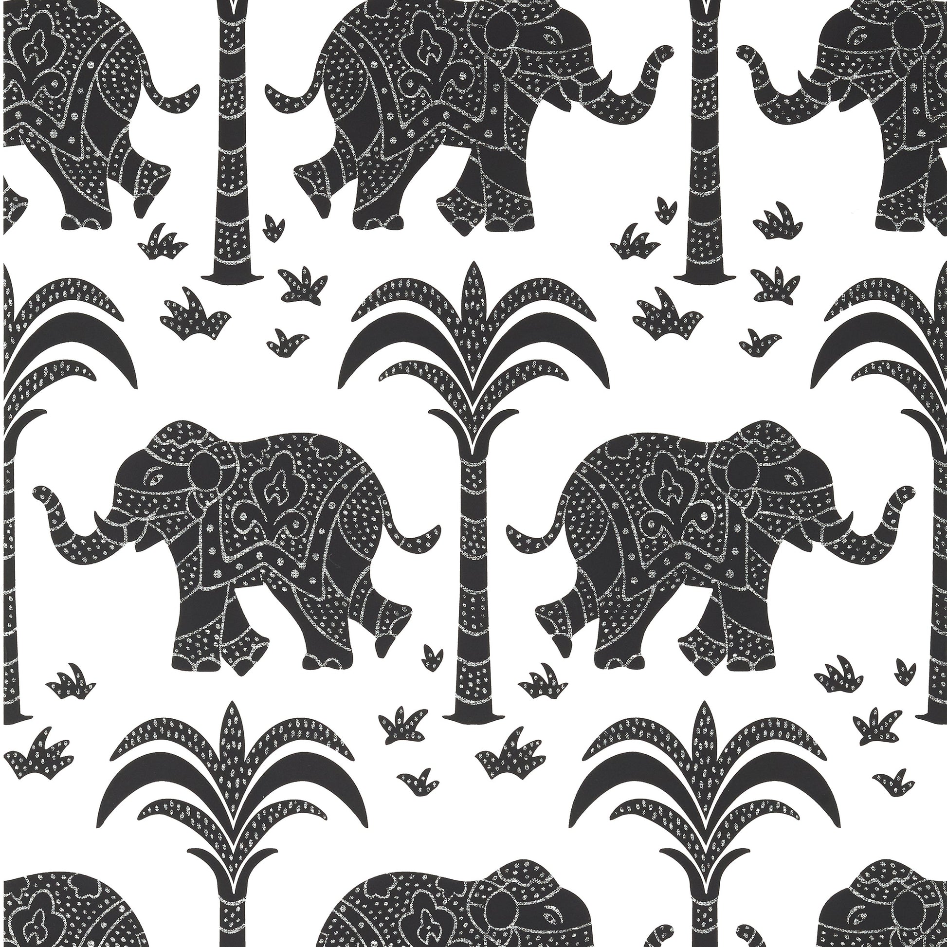 Elephant is a charming wallpaper by Thibaut. It features a printed elephant surrounded by beautiful botanicals.