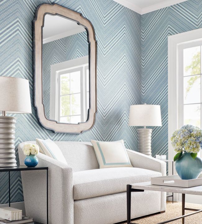 The dynamic Elevation wallpaper by Thibaut features a large scale zig-zag pattern in a contemporary colour palette.