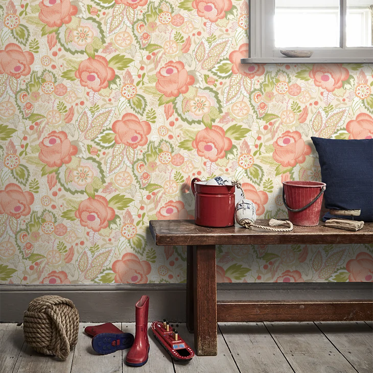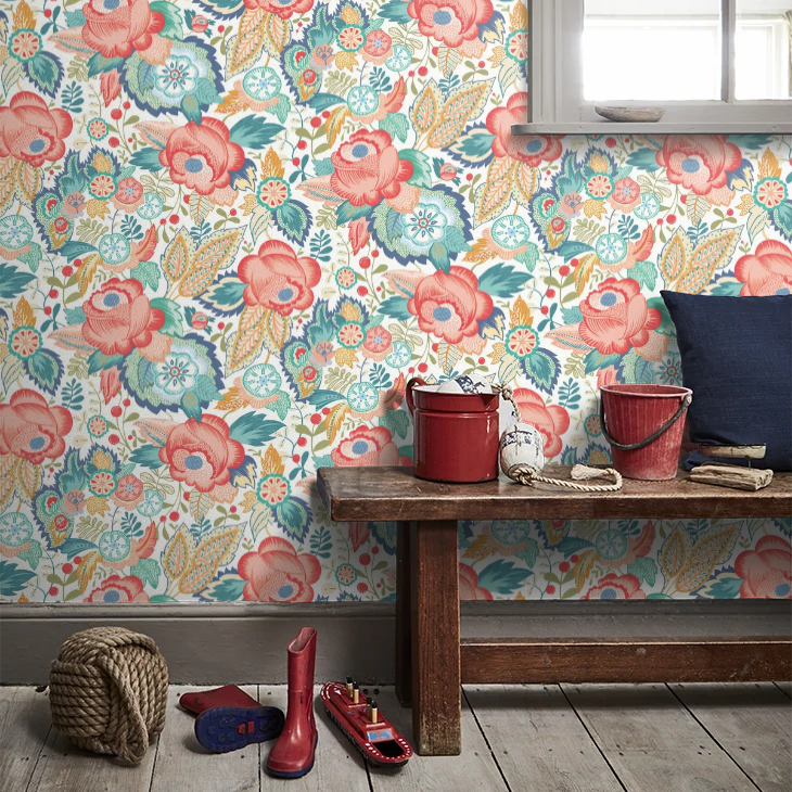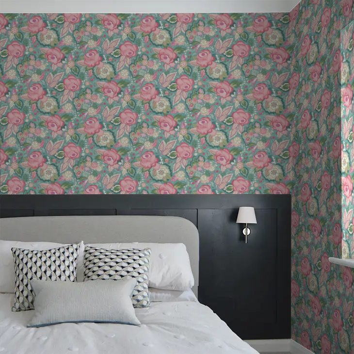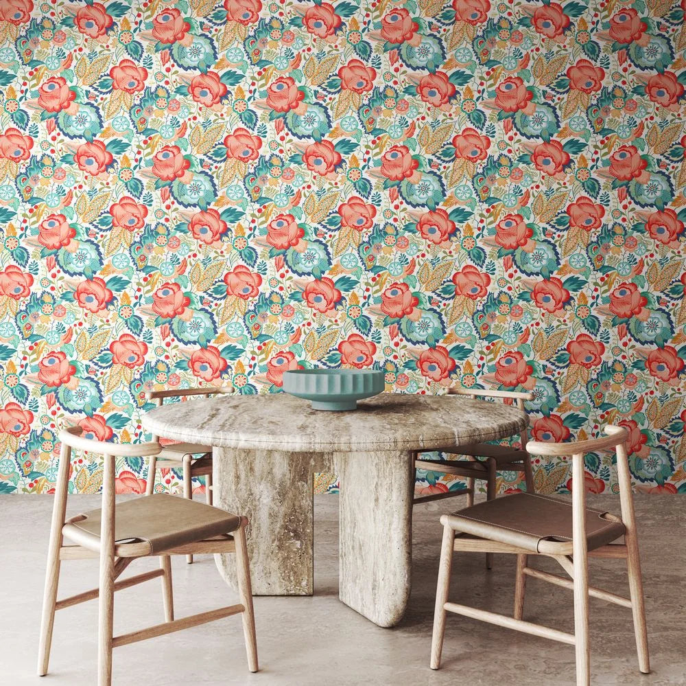 SKU: Emily Rose Wallpaper - Petrol & Coral - Ohpopsi - RON50129W
