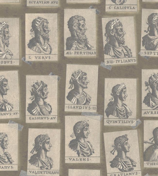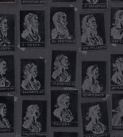 This unique wallpaper design illustrates 120 hand drawn portraits of the all Roman emperors who once lived and conquered the world.