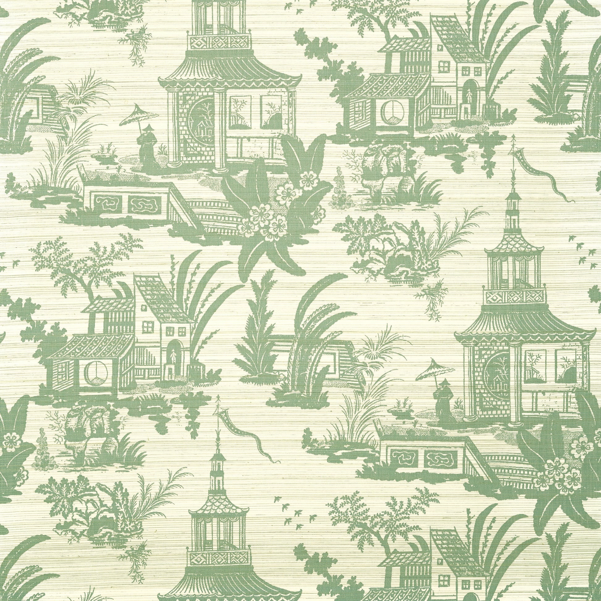 Empress Court is a beautiful grasscloth wallpaper by Thibaut. It features stunning Asian architecture in a sophisticated two-tone colour palette.