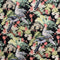 Stunning colours of green, blue and pink stand out against a bold black background that beautifully sets this design alive.