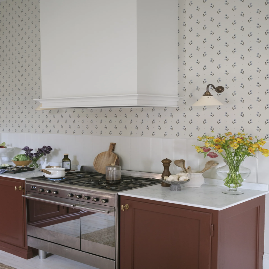 Fernwood wallpaper by Colefax & Fowler is a delightful choice for kitchen decor, known for its refreshing botanical designs and vibrant colors. This wallpaper can bring a touch of nature indoors, creating a cheerful and inviting atmosphere that enhances the overall aesthetic of the kitchen.