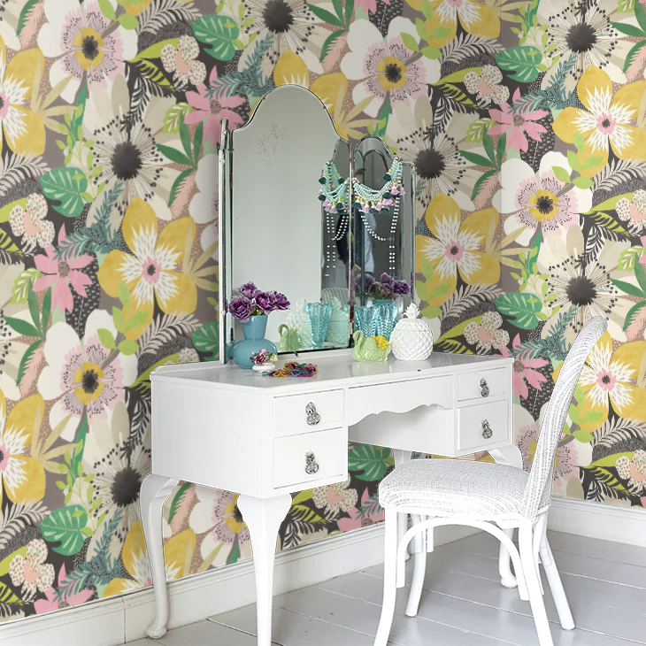 A joyful explosion of bold graphic florals with stripes, spots and animal markings expertly interwoven to add drama and texture. Floral Riot is a refreshing, exuberant and colourful call to action, a powerful statement wallpaper.