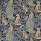 This printed fabric depicts scrolling acanthus leaves peacocks hares and foxes amongst bunches of wild flowers inspired by the Forsest Tapestry by Morris & Co. and designed by Alison Gee in 2013. Digitally printed on velvet and linen for a sumptuous finish with the durability suitable for an upholstery fabric.