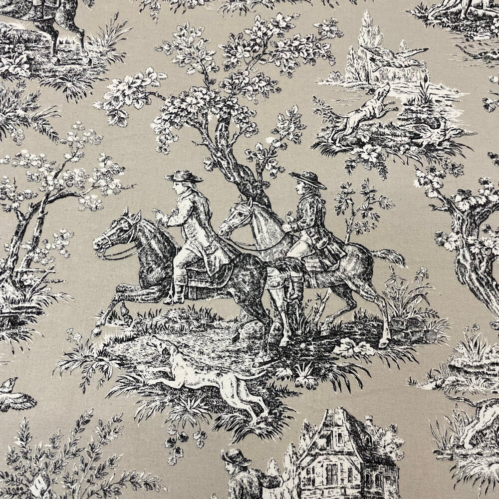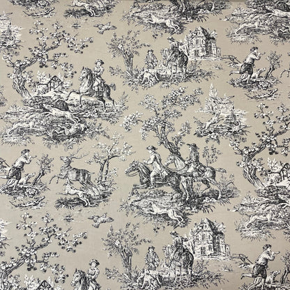 In wonderful detail, French Hunting Toile fabric takes inspiration from the classic Toile De Juoy patterns depicting rural life in 18th century France. Hunting Toile features stunning scenes as the hunt embark, featuring men on horse back, hounds and the hunted stag.
