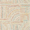 A loose interpretation of a formal pattern of rectangles and circles made from small dashes of colour, like pebbles placed in rows. Wide width product.