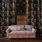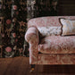 Referencing an archive document, Fringed Tulip Toile is reimagined as a distressed batik style print. Double-headed parrot tulips and roses appear in weathered form, aged yet still beautiful, antiqued yet grandiose. This textured, stripped back design mimics the technique of extract printing; a special block printing process which removes a colour to create a lightened effect, almost bleached to reveal the design in a new light. Printed on a linen union for upholstery use.