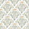 Among the beautiful foliage and flowers, birds watch over the it's nest. The lovely natural pattern creates pure art on the wall that resembles medallions. Frodas is available in three colorways. This has a white base and goes in muted tones of green, beige, yellow and blue.