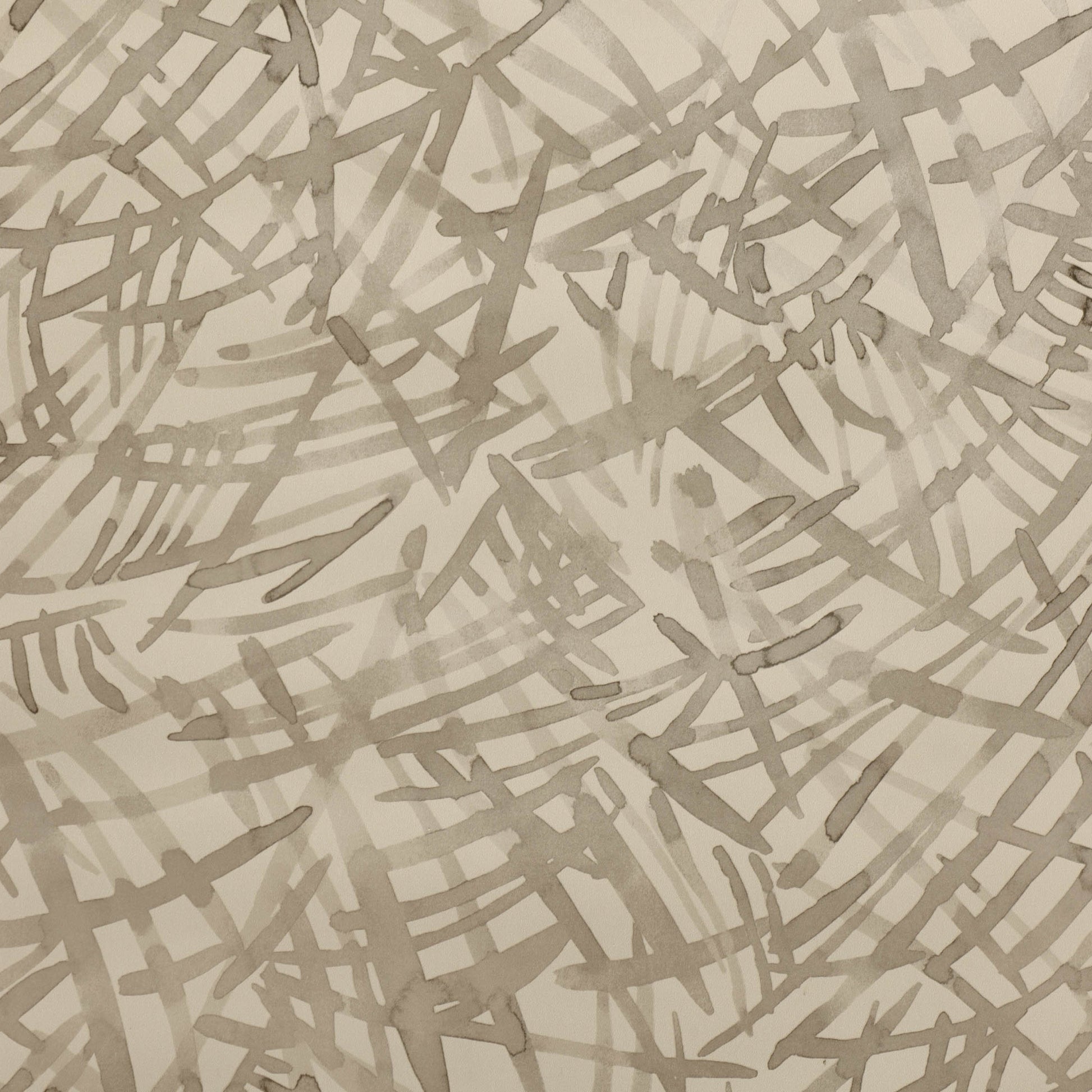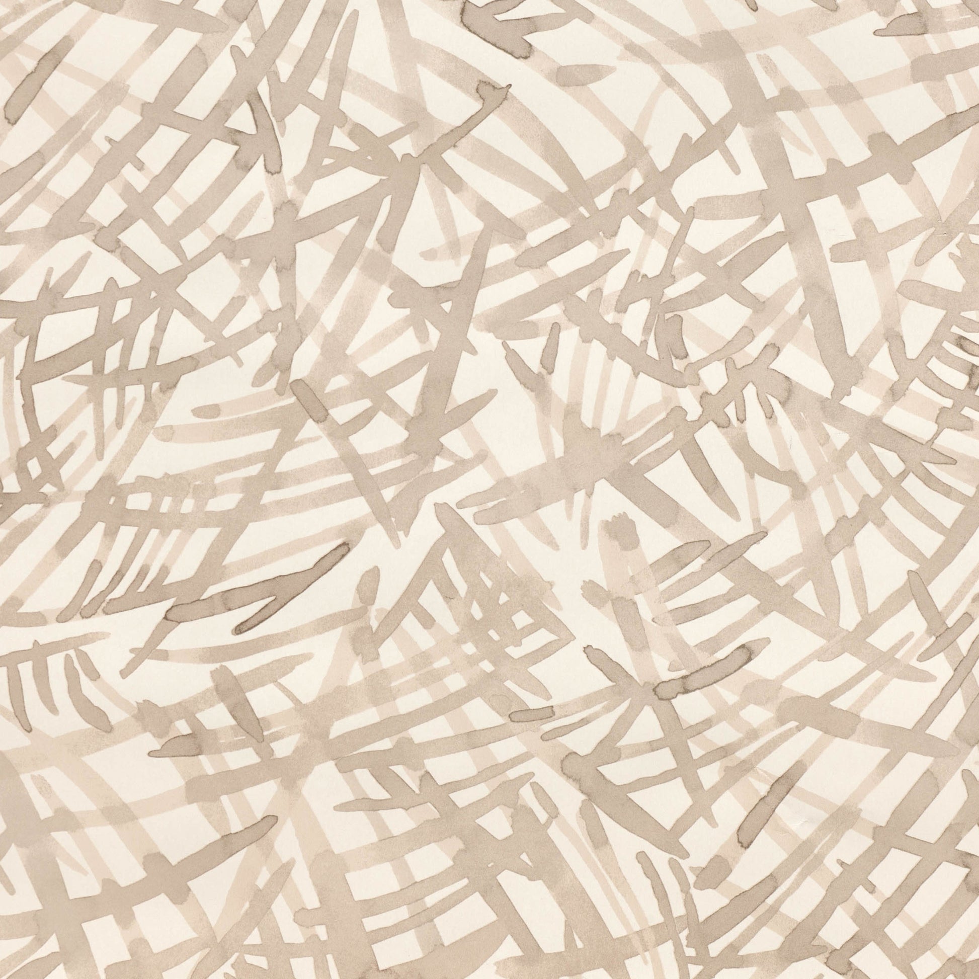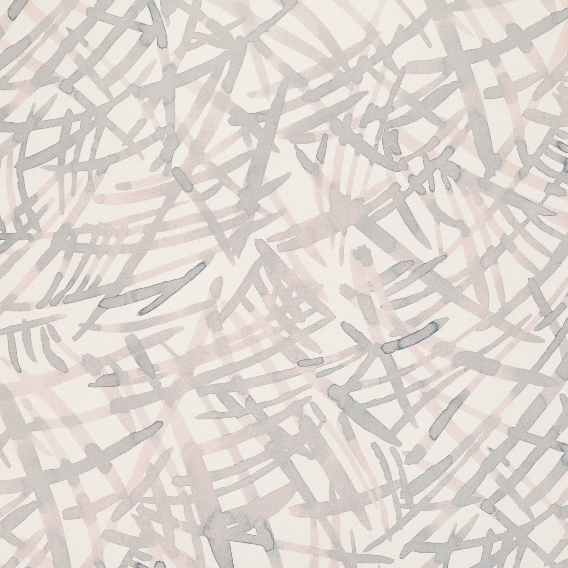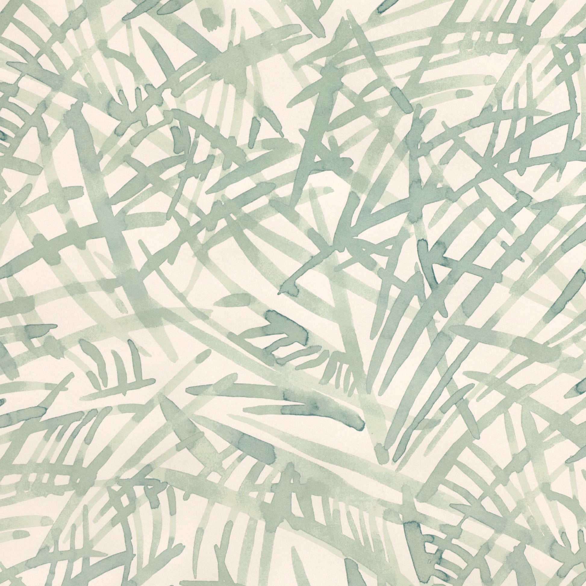 Painterly intertwining fronds overlap and converge to form an abstract all over pattern that has the look of a water colour, painted on textured paper.