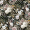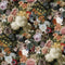 An all-over design of garden flowers, featuring chrysanthemums, peonies, anemones, tiger tulips and violets.