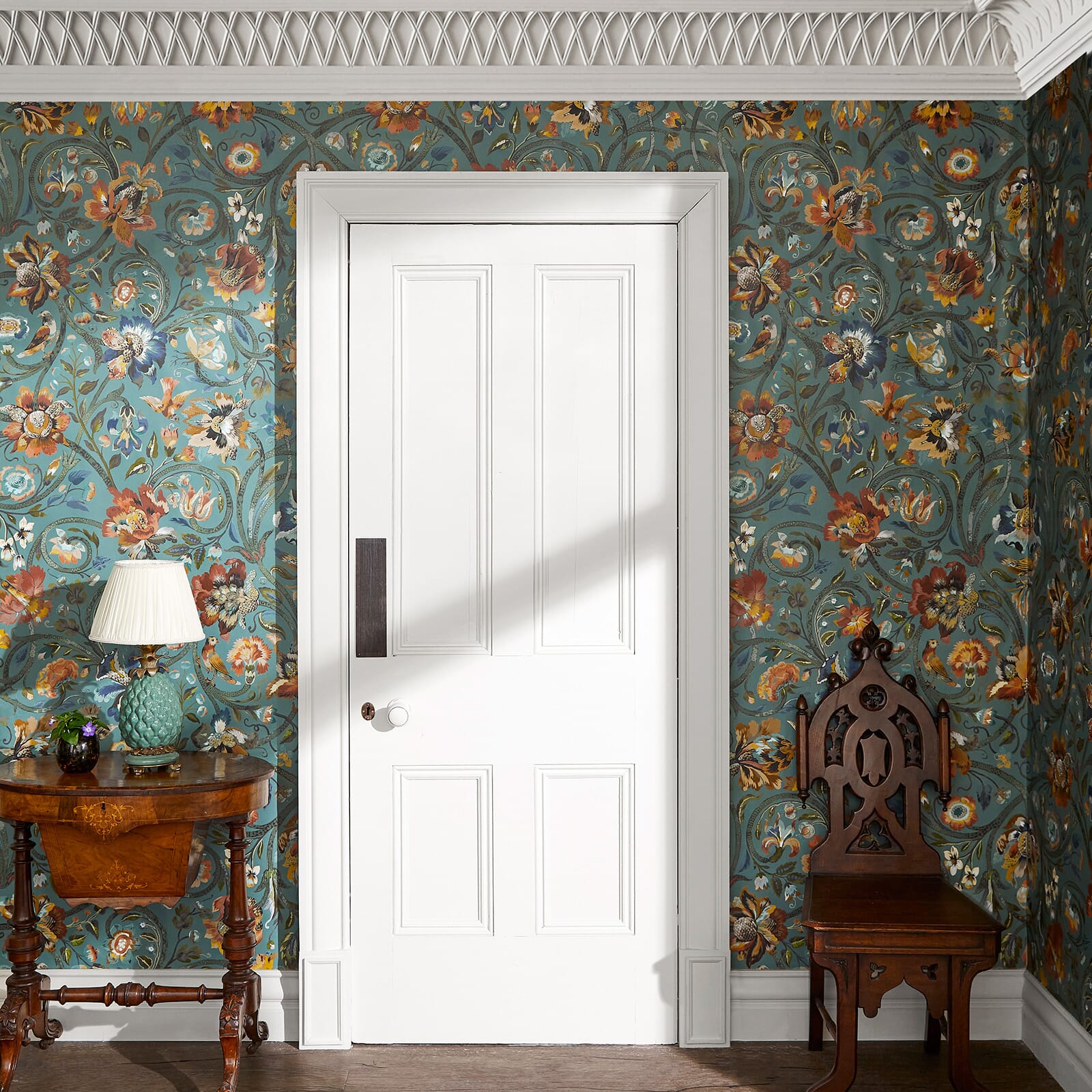 Vines curl and coil, birds swoop and flowers bloom across the GAIA wallpaper – so named for the goddess of ancient mythology from whom all life on earth sprang. Drawing inspiration from the Arts and Crafts movement, this large-scale print encapsulates the beauty of the natural world, while a muted colourway infuses the interior with warmth.