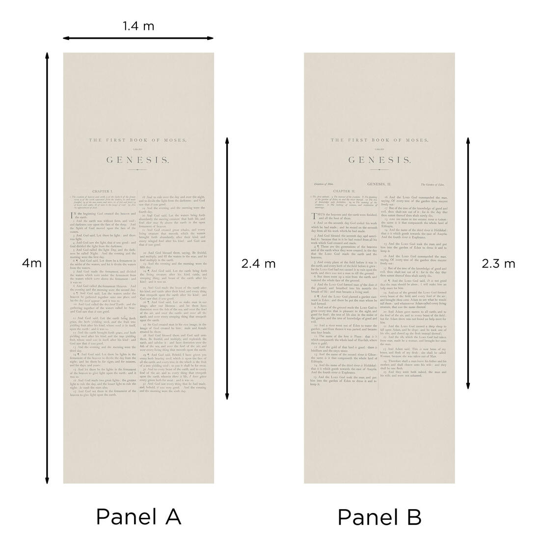 Panel height: 4m, Width: 2.8m. Divided into 2 x 140cm drops. Printed on a single roll.
