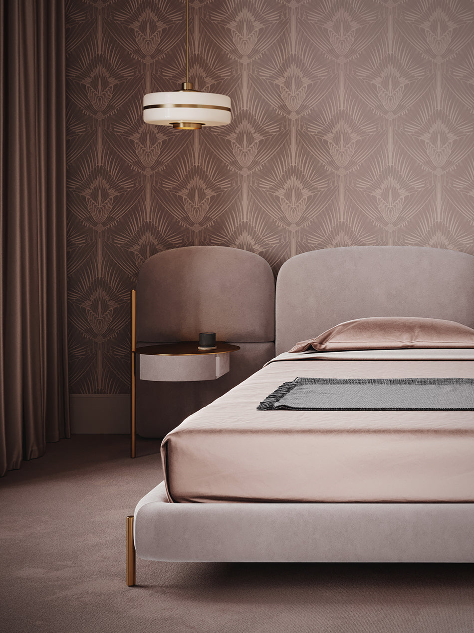 Gershwing. A decadent, feathered, Art Deco influenced print, bringing unapologetic glamour and depth to any interior. A classic, refreshed. Gershwing has a luxurious pearlised sheen to give a subtle exuberance to your room, and this design is available in a confident colour palette to create your own bold new look.