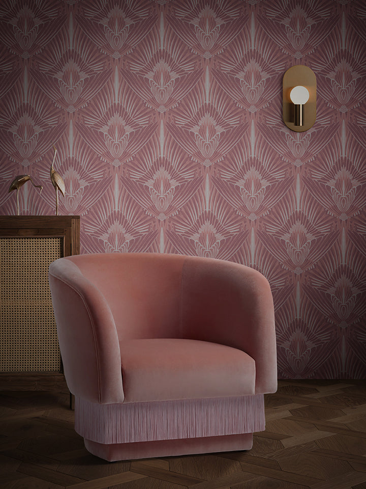 Gershwing. A decadent, feathered, Art Deco influenced print, bringing unapologetic glamour and depth to any interior. A classic, refreshed. Gershwing has a luxurious pearlised sheen to give a subtle exuberance to your room, and this design is available in a confident colour palette to create your own bold new look.