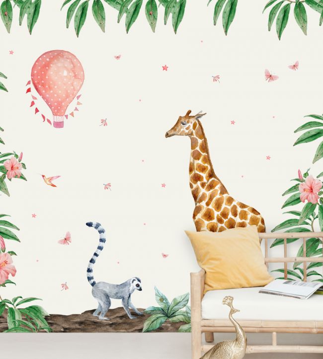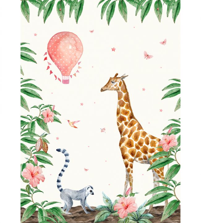 This charming Giraffe mural features an elegant giraffe and ring-tailed lemur, with dainty pink elements to give a whimsical safari inspired design. Divided into 4 x 48.7cm drops.