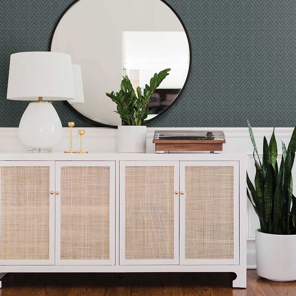 A faux grass cloth or fabric weave design with a strong zig zag stitch pattern.