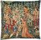 This classic tapestry cushion telling the story of winemaking from collecting the grapes. The original tapestry was woven in Tournai in the 15th Century. This beautiful cushion is designed with a 'Mille Fleurs' or 'Medieval Flowers' background. This beautiful tapestry cushion is finely woven by skilled weavers on traditional Jacquard Tapestry looms. The tapestry design is then sewn into an exquisite cushion cover in England and is meticulously hand-finished with a luxurious British velvet back. You can select from a filled cushion (with removable feather filler) or as a cushion cover only.