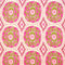 This large-scale woven medallion design in rich colours on a white ground has been inspired by a suzani document.