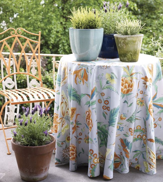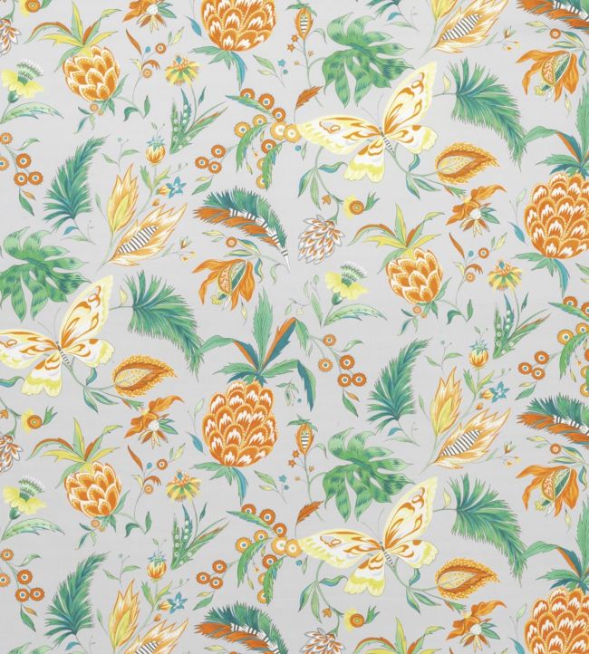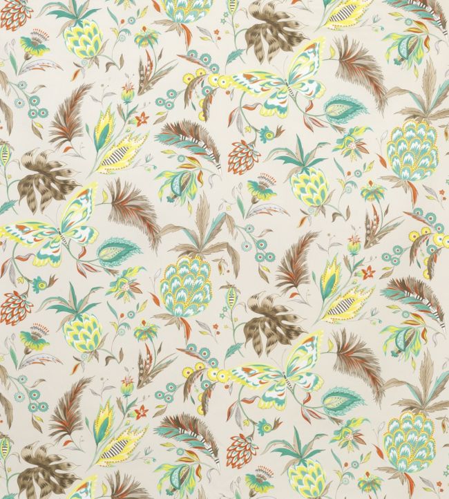The Cuban rhythmical dance music lends its name to this toile featuring pineapples and butterflies.