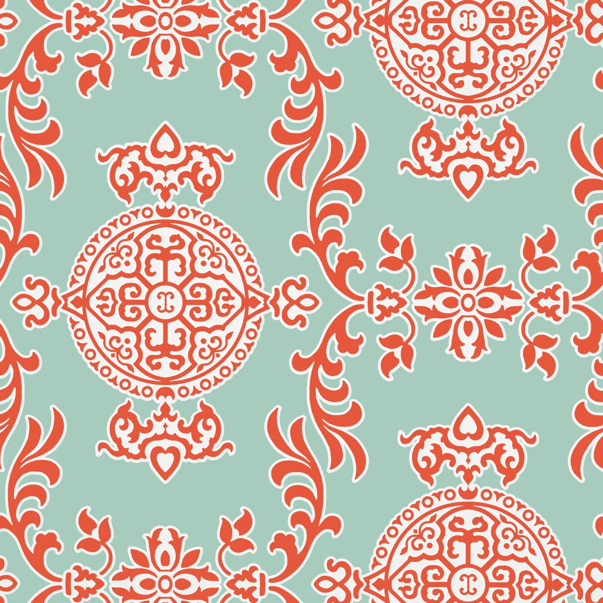 SKU: Halie Wallpaper - Aqua & Coral - Thibaut - T36113