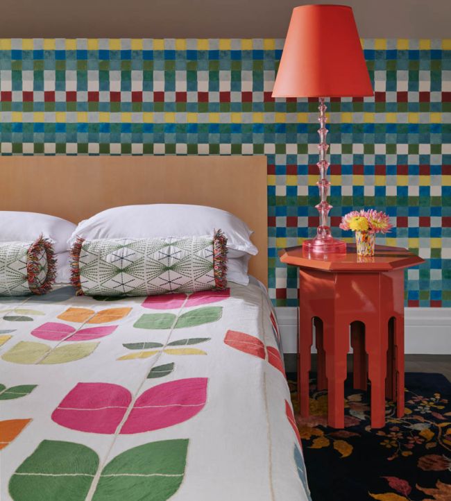 In collaboration with Veronique de Soultrait, Happy flowers by Christopher Farr Cloth is a hand-guided curtain-weight fabric on a cotton base cloth. A whimsical take on the palmetto motif, Happy Flowers allows for creative flexibility with petals that can be rearranged in a variety of configurations. Veronique incorporates an array of repeats, ranging from geometric patterns to retro florals, evoking a playful spirit reminiscent of arranging dominoes. This design radiates vibrancy and joy, bringing a lively and dynamic energy to any space.
