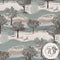 This charming print illustrates a countryside scene with leaping deer, trees, rolling fields and hills.
