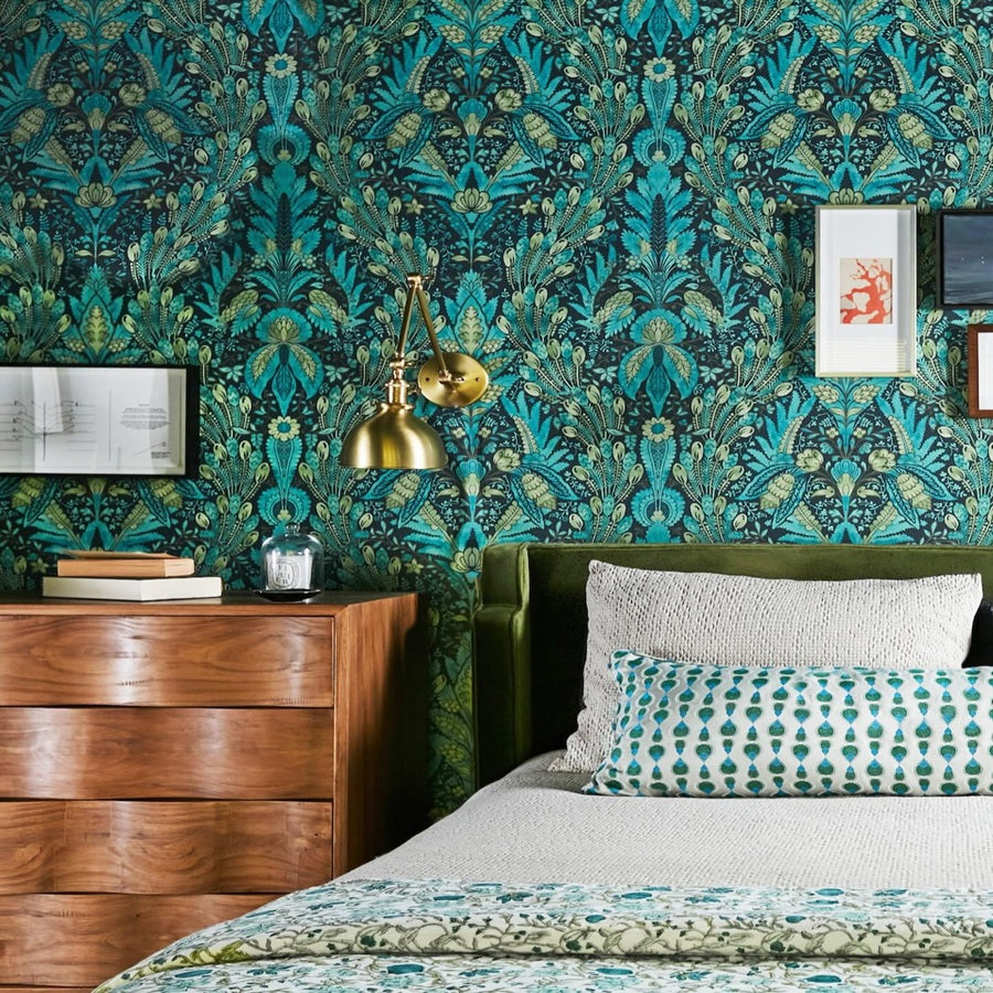 Hawksmoor wallpaper by Lewis & Wood is a sophisticated choice for bedroom decor, inspired by the architectural style of Nicholas Hawksmoor, a prominent 18th-century architect known for his dramatic and intricate designs. This wallpaper combines historical elegance with modern sensibility, making it a perfect fit for various bedroom aesthetics, from classic to contemporary.