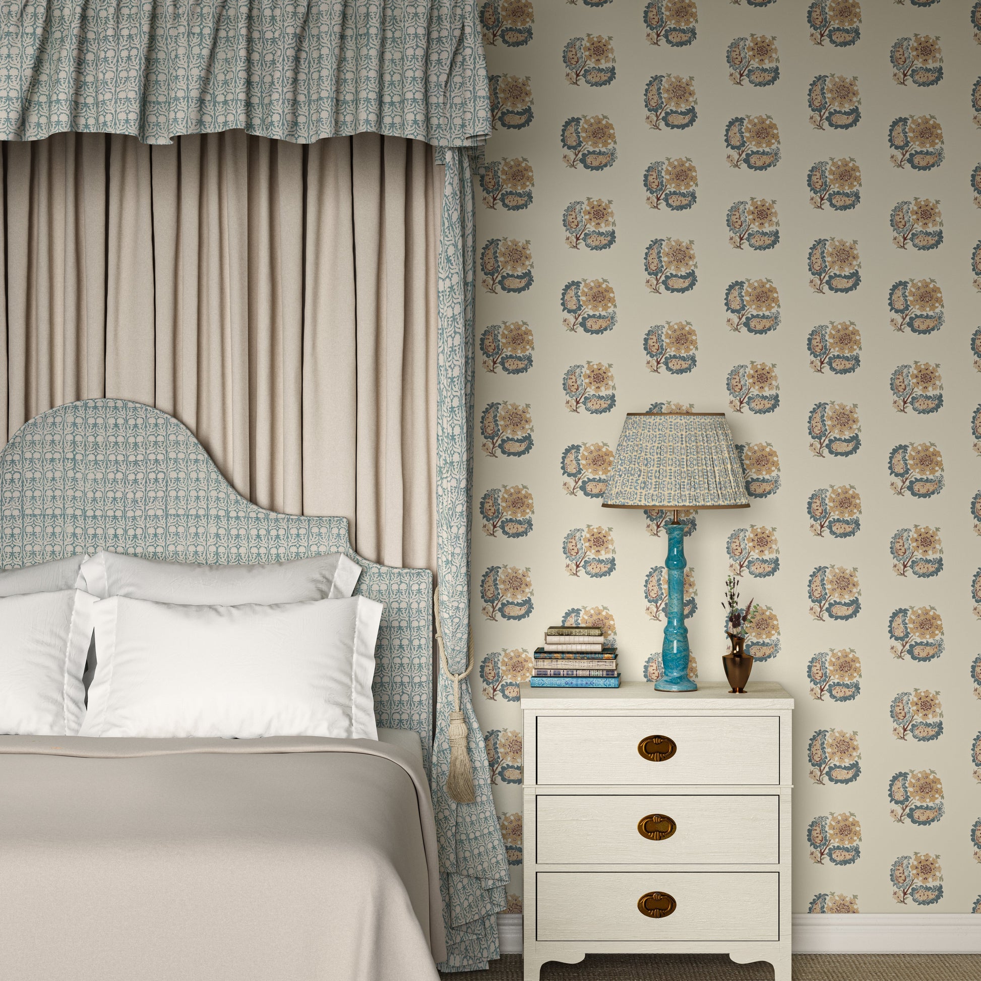 The Helena design features a repeated beautiful floral motif inspired by medieval tapestries. It makes for a gorgeous way of adding a touch of the traditional into contemporary spaces.