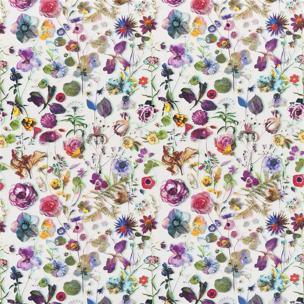An exquisite print that features an extraordinary assemblage of photographic blooms with a vivid and glowing, outline detail. Designed exclusively by the design studio of Christian Lacroix Paris in two distinct colourways, to highlight the beautiful colour combinations within the design. This design is digitally printed onto a pure cotton satin ground. The perfect fabric for a wide range of interior applications including, curtains, blinds, cushions, bedcovers and upholstery. Composition: 100% Cotton.