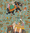 A marvelous pattern representing the beautiful world of Hindustan on a pale blue background.