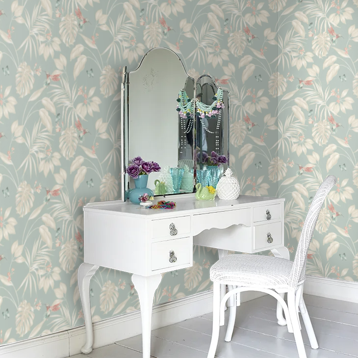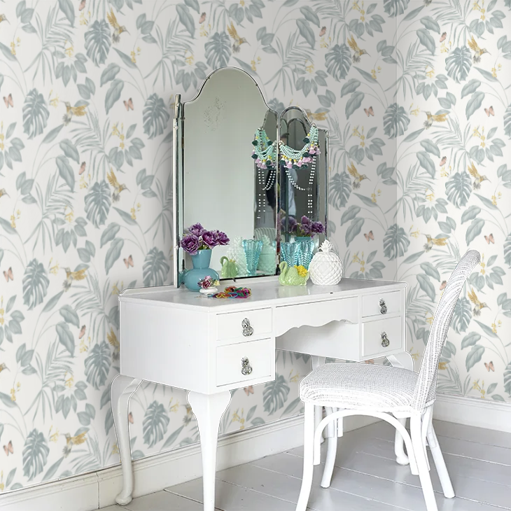 Delicate hummingbirds and lush foliage combine in this striking, beautifully hand-drawn design. Elegant and serene it’s a perfect design to create a calming haven.