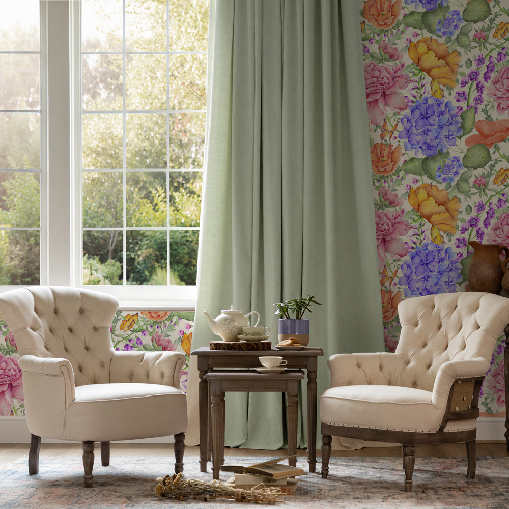 Transform your living space into a modern sanctuary with the Idalia wide-width, non-woven wallpaper. With a matte finish that enhances its digitally printed design, this wallpaper showcases a vibrant watercolour study of foliage and florals. Its contemporary twist on a classic country theme brings a touch of elegance and warmth to any room. The wide width design minimizes seams, providing a seamless, professional look that is both sophisticated and stylish. The vivid colours and artistic design create a captivating focal point, effortlessly blending modern aesthetics with timeless charm. Elevate your home’s interior with this stunning piece, and enjoy a space that radiates both creativity and comfort.