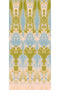 The Ikat Damask wallpaper features a classic damask pattern that is blurred and stretched vertically to evoke the feathering effect found in traditional ikat fabrics. The pattern shifts in scale across the height of the panels, creating a stacked totem-like composition. Each panel is digitally printed to highlight the intricate detail of this complex and unconventional design.