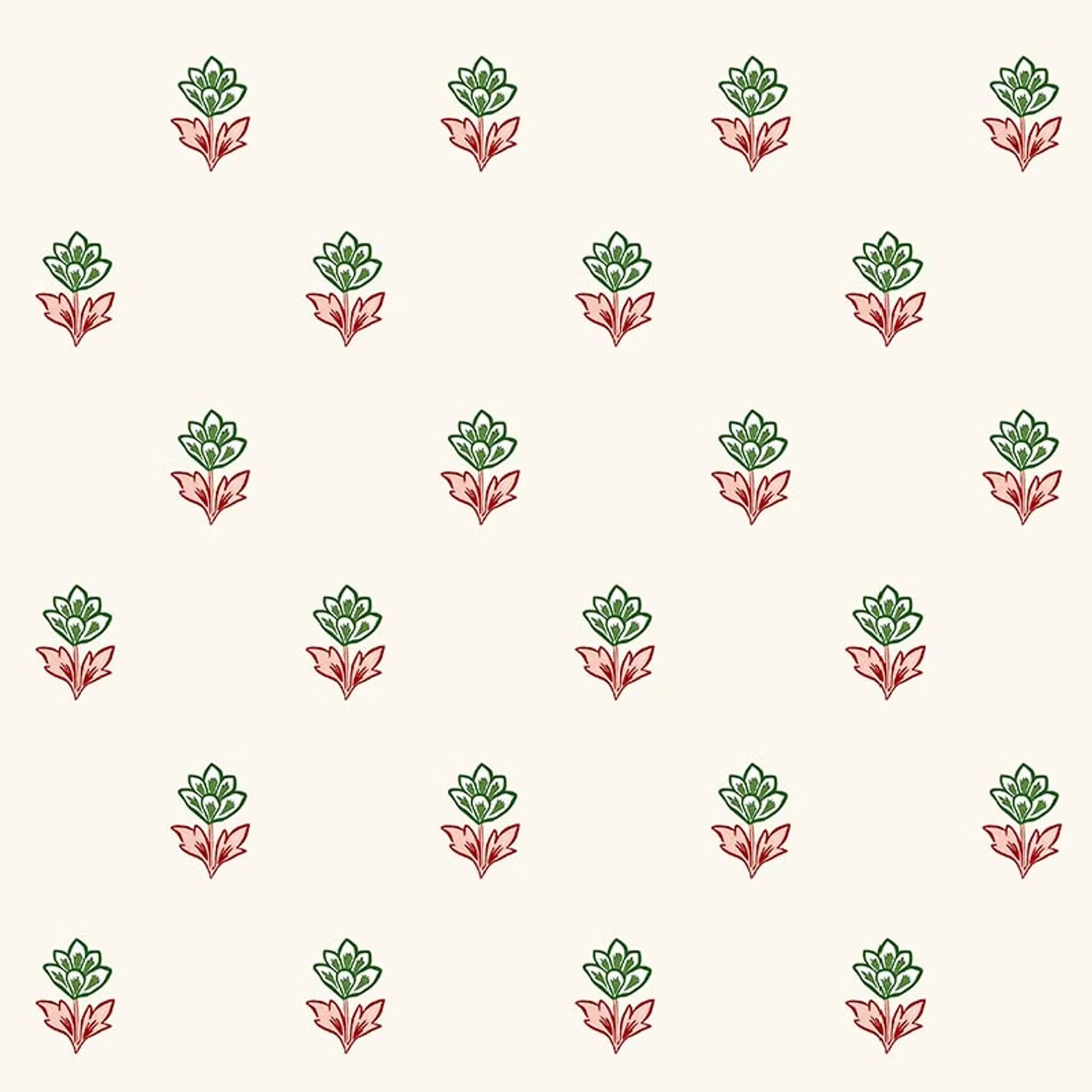 Hand drawn in Ottoline's London studio, the Indian Checks wallpaper design features a check design with stylized flowers.