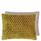 This elegant boudoir cushion in noir is created with small scale hexagon jacquard cut pile velvet Jabot, with an almost iridescent feel on a fine woven ground. Reversing to Mirissa in putty and edged on two sides with Pampas in biscuit, this charming velvet cushion will add a glamorous touch to your interior scheme. Material: Front = [54%Pl, 41%Vi,, 5%Co], Reverse = [100%Pl], Trim = [60%Co, 40%Pl]
