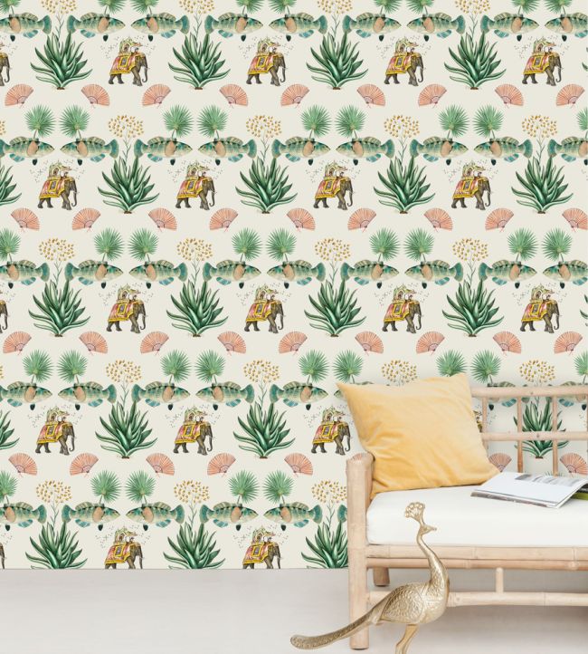 The Jaipur design is a unique Indian design with elephants, fish and beautiful pink elements. Printed on non-woven paper. Divided into 4 x 48.7cm drops.
