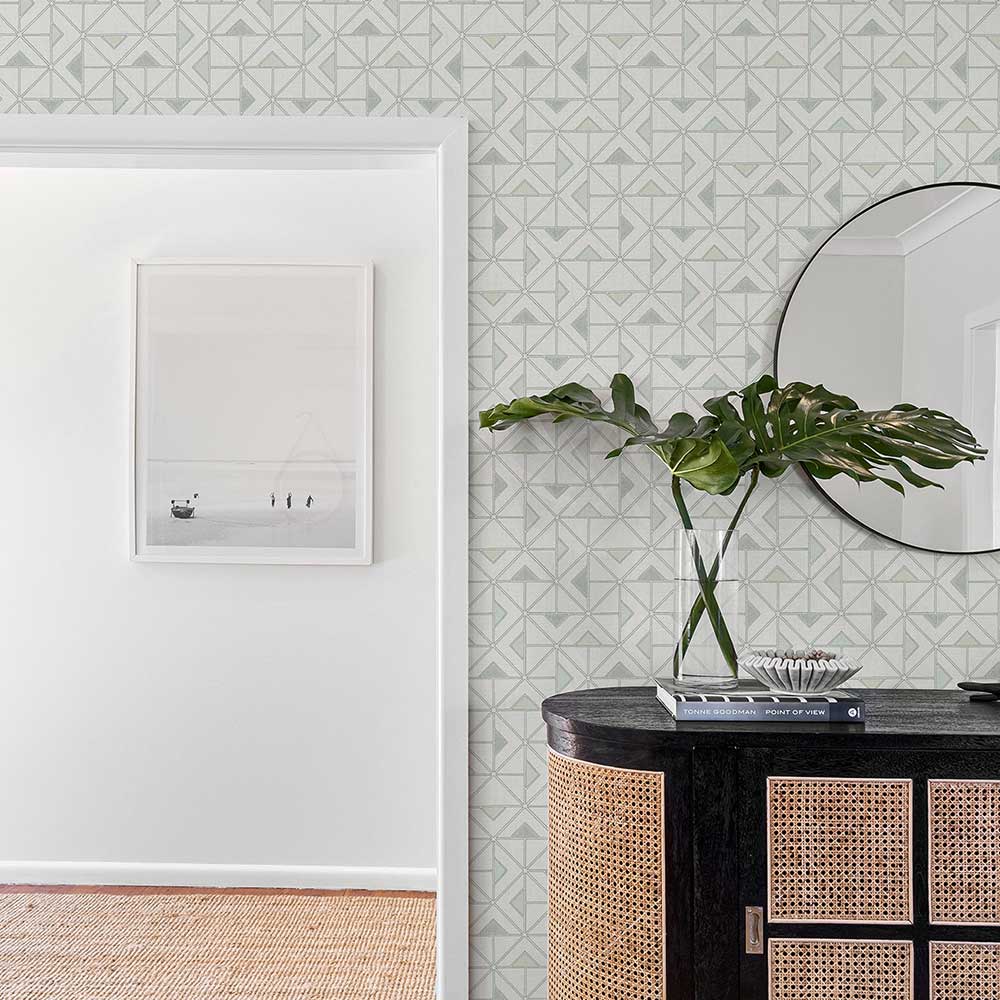 A pleasing geometric tile effect design of triangles within diamonds on a fabric effect background.