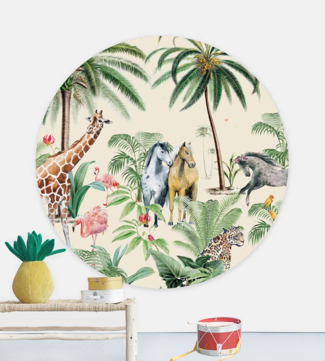 Majestic horses prance among jungle foliage with other wild animals. Printed on non-woven paper, this circle wall mural is the perfect feature within your child's bedroom or playroom.