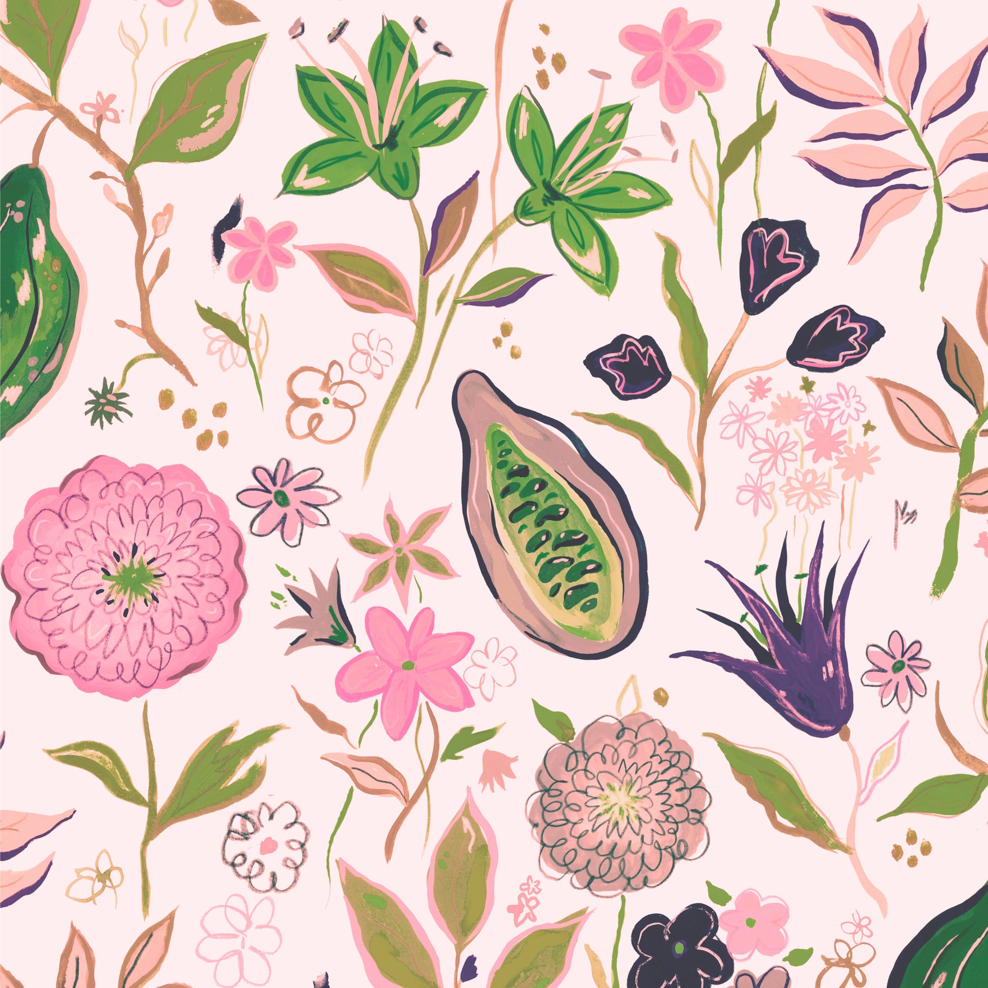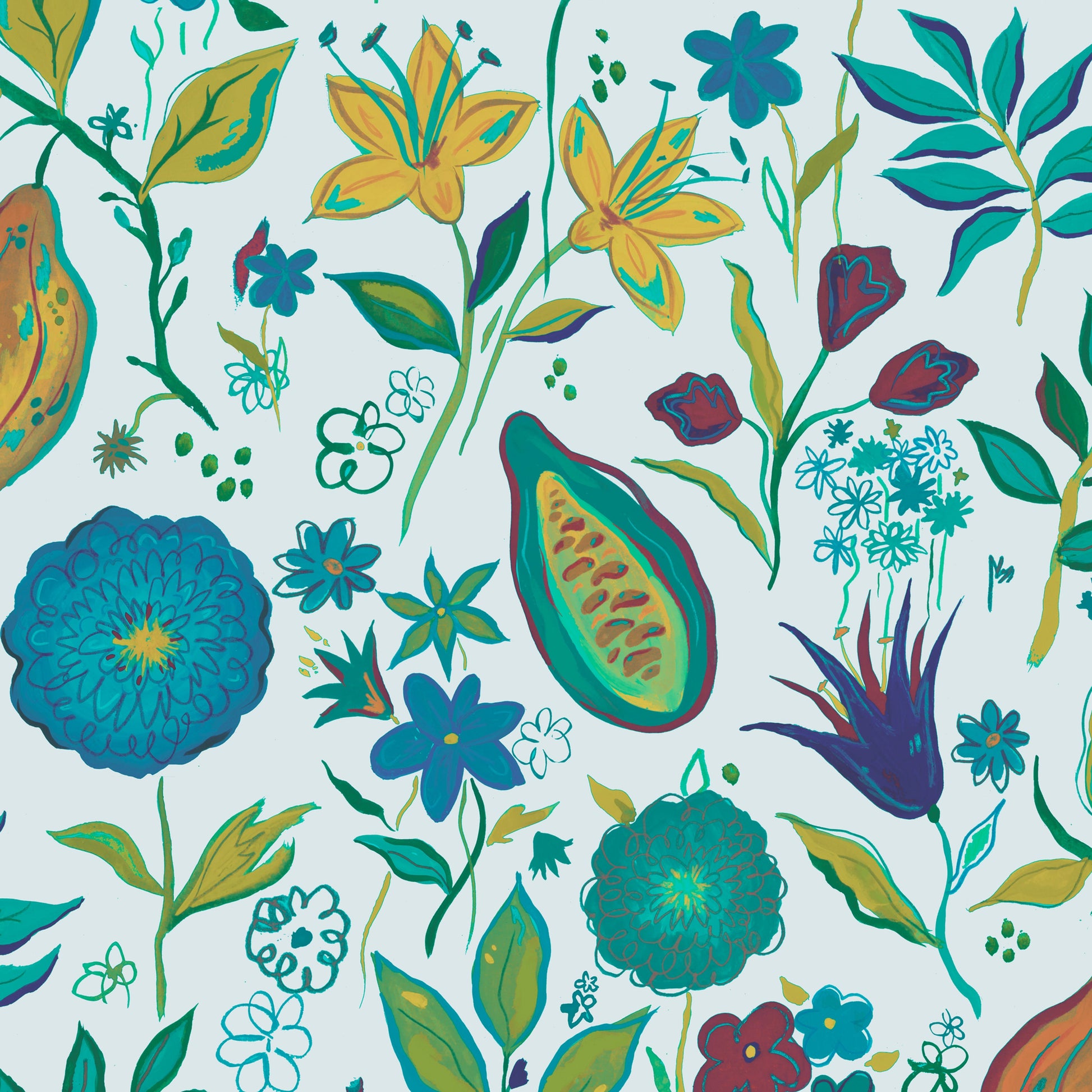 Our Kakao design was inspired by the origins of delectable chocolate! On our inspiration trip to Costa Rica we watched the process of chocolate making from start to finish which was truly fascinating and of course, delicious! Our print 'Kakao' features the famous fruit of the Theobroma cacao tree which are the pod like shapes within the design. The fruits harbour the cacao beans which are technically the seeds of the fruit. I wanted the style of the design to be childlike and naive to reflect the joy and nostalgia that chocolate brings people.