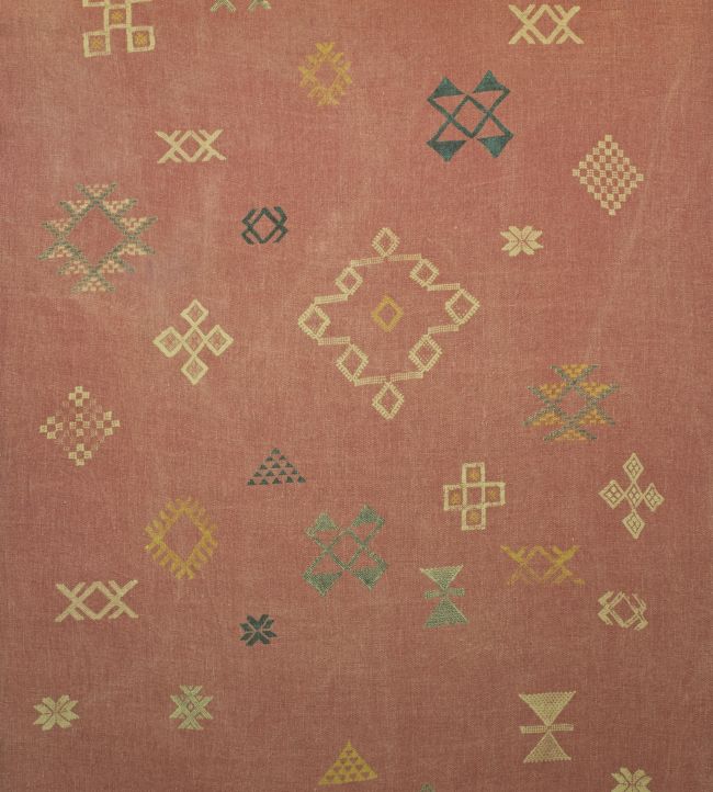 Inspired by abstract shapes and symbols seen across many traditional fabrics, Kasbah is a delicate constellation of geometric motifs intermittently scattered across a soft pink background. This eclectic design allows for a subtle introduction of pattern into your interiors.