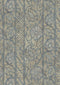 Based on an Indian muslin shawl embroidered with gold satin thread, the design works beautifully with various colour structures. It can look like an opulent brocade or a simple, crewel-embroidered wool.