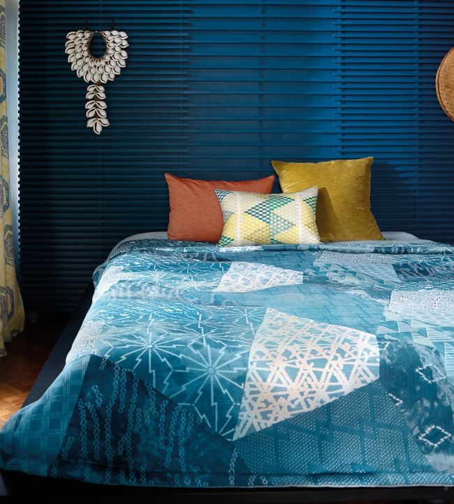 A dynamic patchwork of stencilled patterns, Katazome is named for the resist dyed technique from Japan.