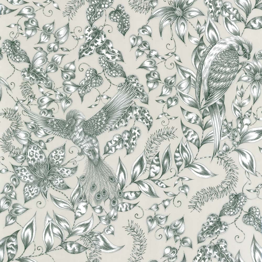 The design Kayyam was created exclusively for Osborne & little by Emma Shipley. Exotic birds and foliage printed in monochrome.